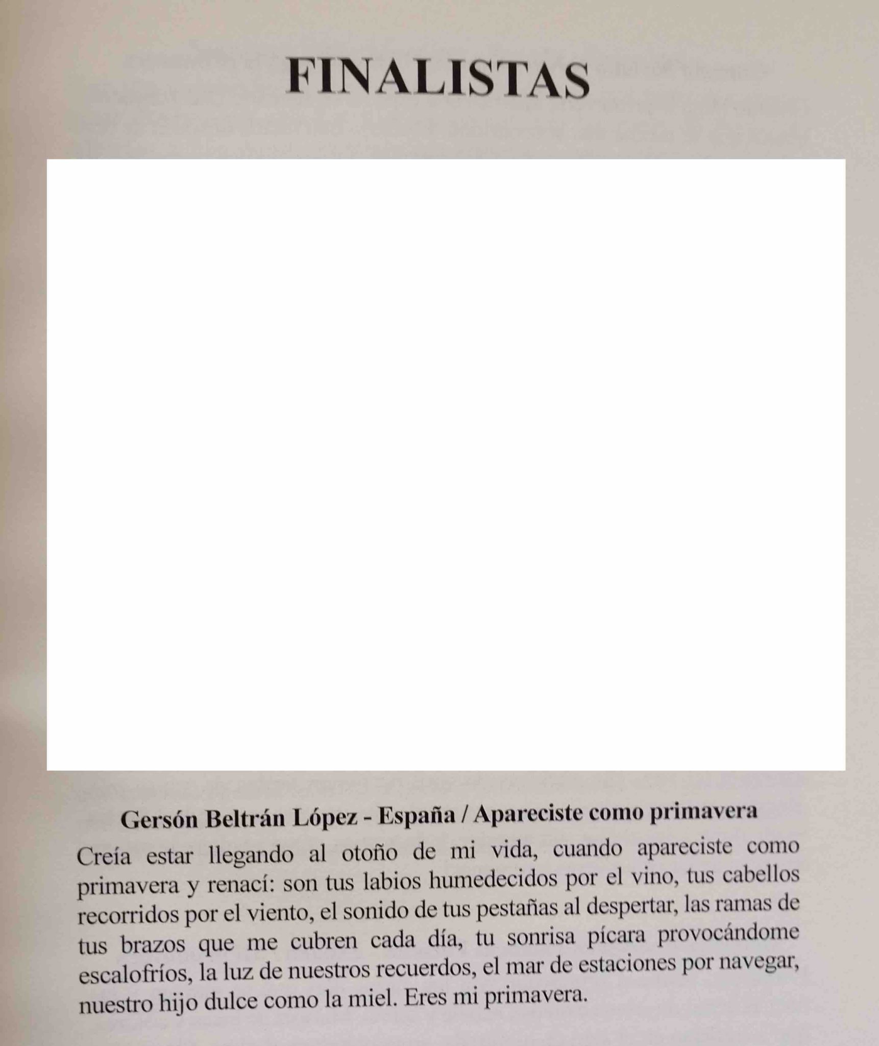 Finalista del IX Concurso de microrrelatos «La primavera la sangre altera», de Diversidad Literaria, con el relato «Apareciste como primavera»: