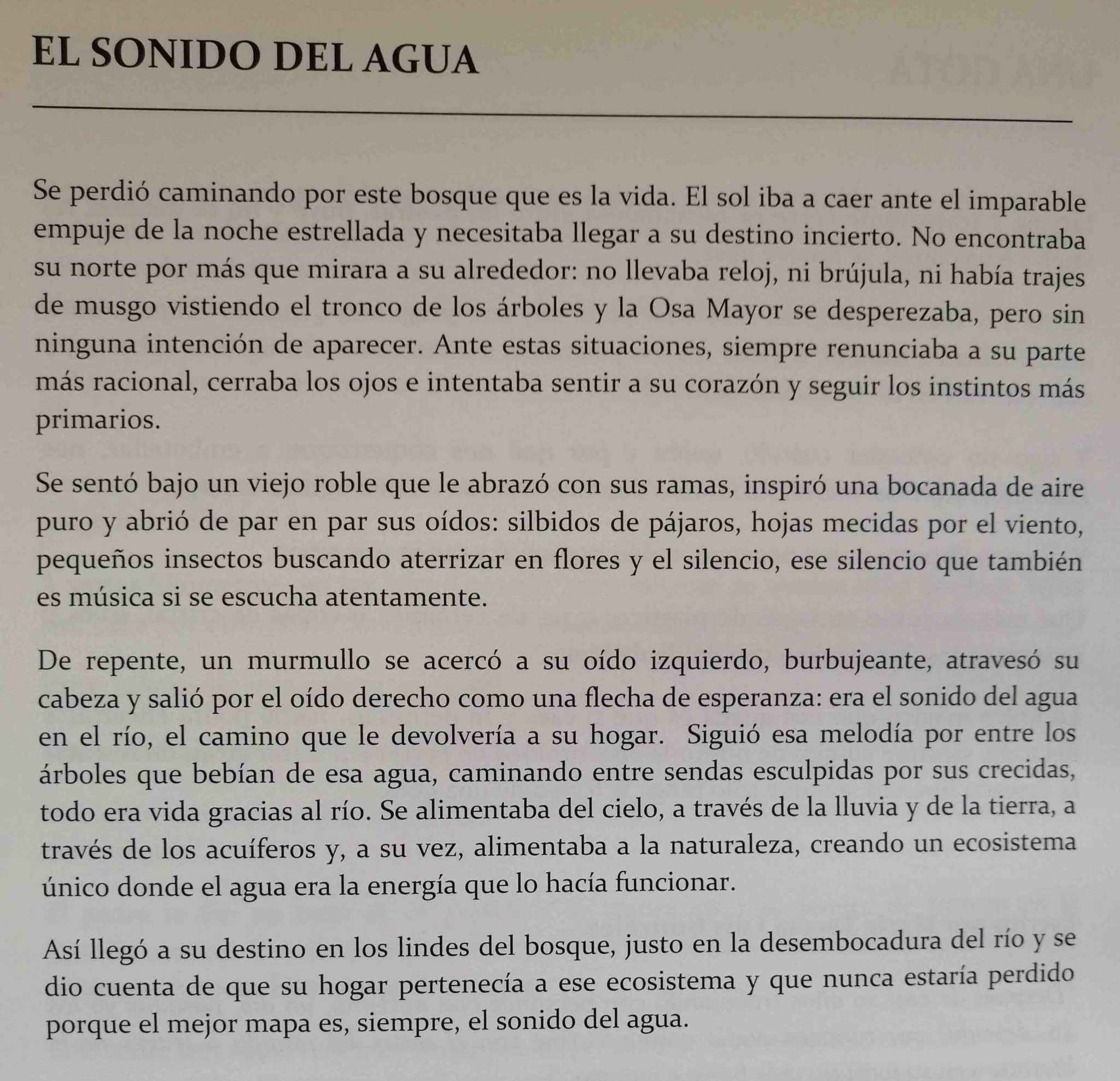 Finalista del I Certamen literario de relato corto «EnLetras» del Hotel Latorrién de Ane con el relato «El sonido del agua»:
